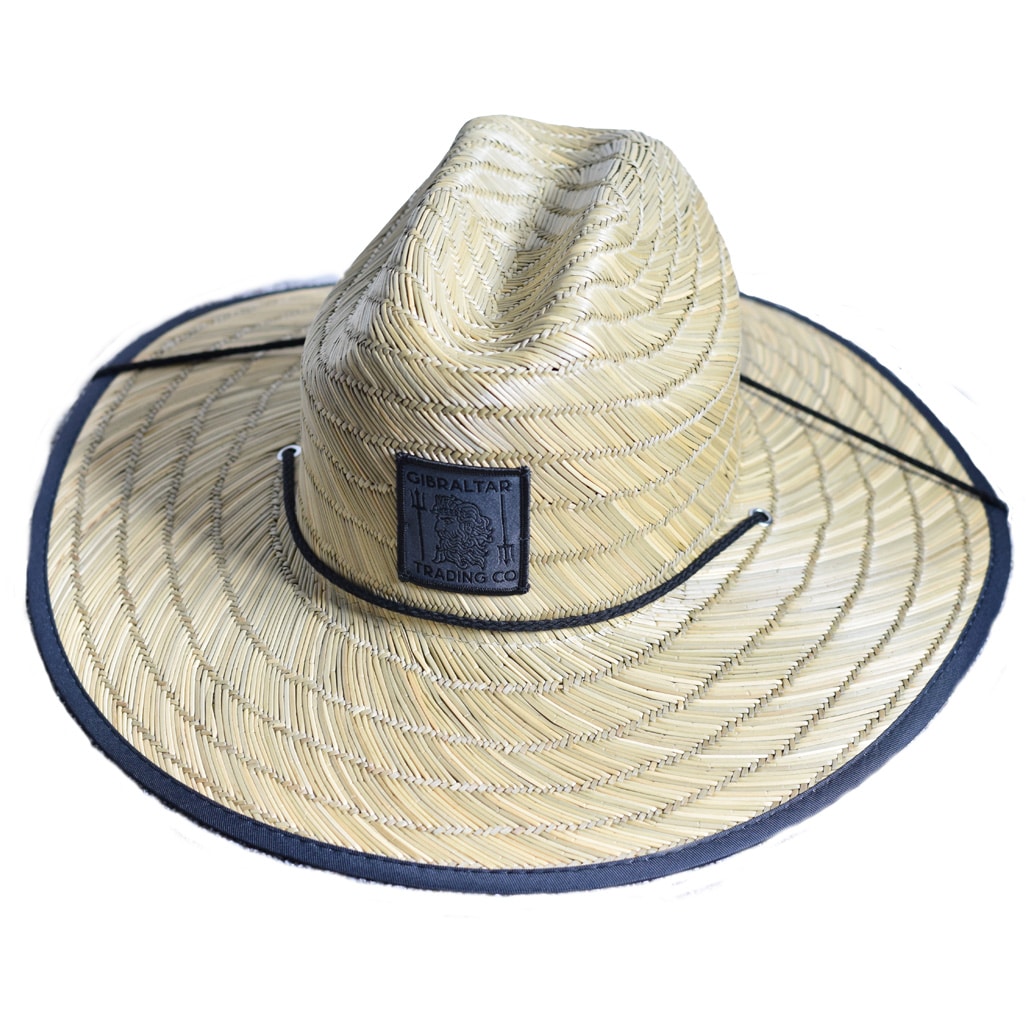 GTC MK1 Straw Hat. Featuring the Sons of Poseidon woven patch on the front, topography design on the underside and a wooden toggle draw string for retention. One size fits most with a slightly elasticated head band for simplicity and comfort